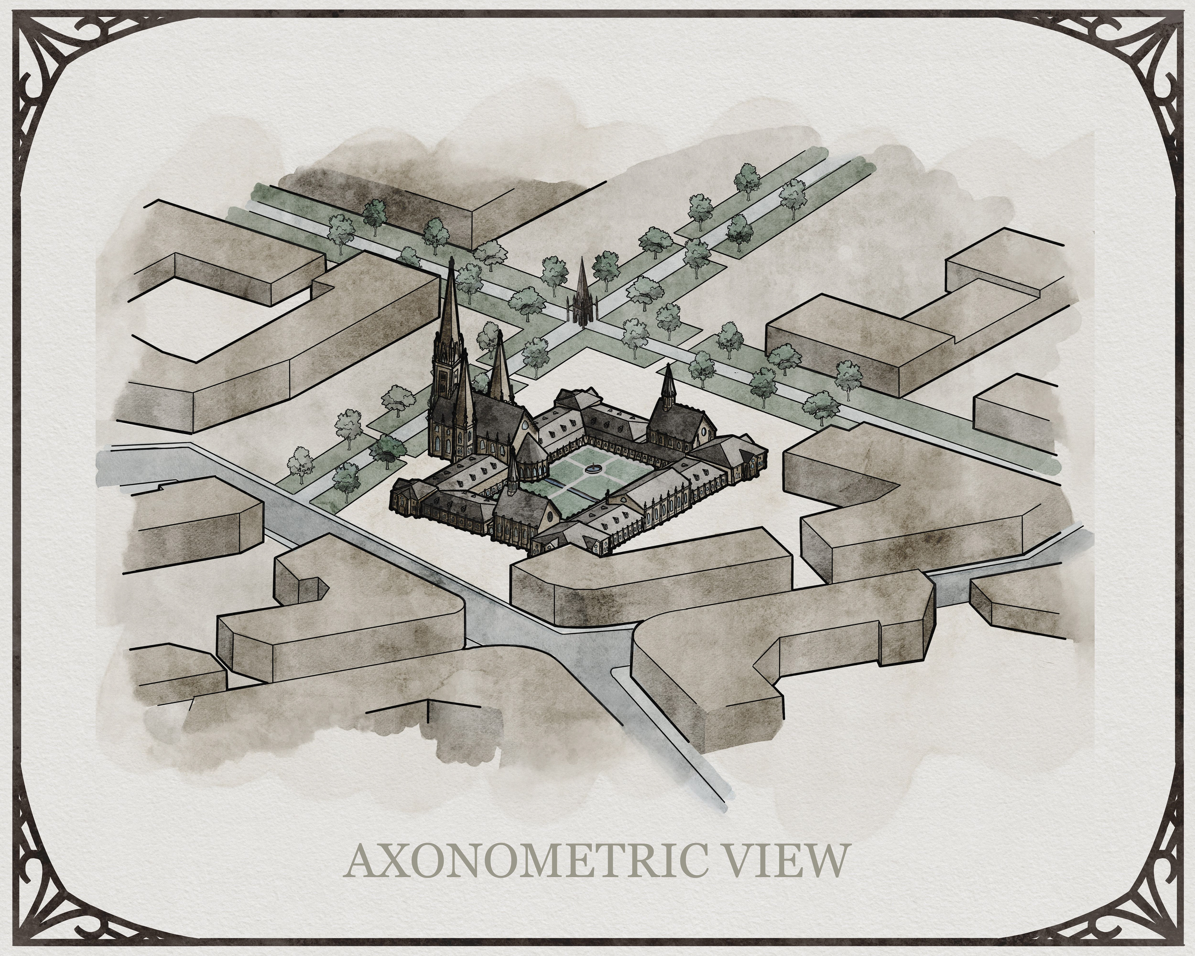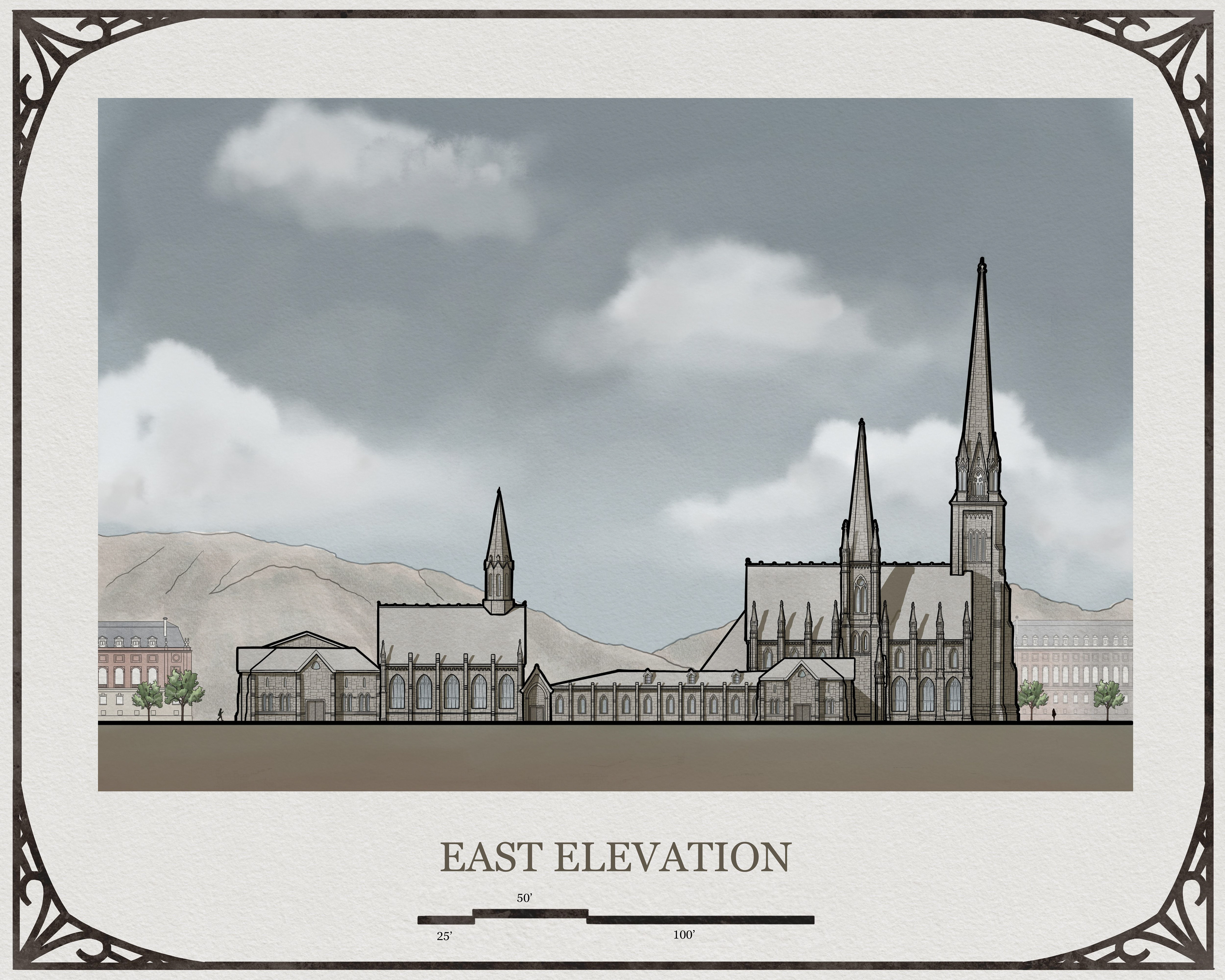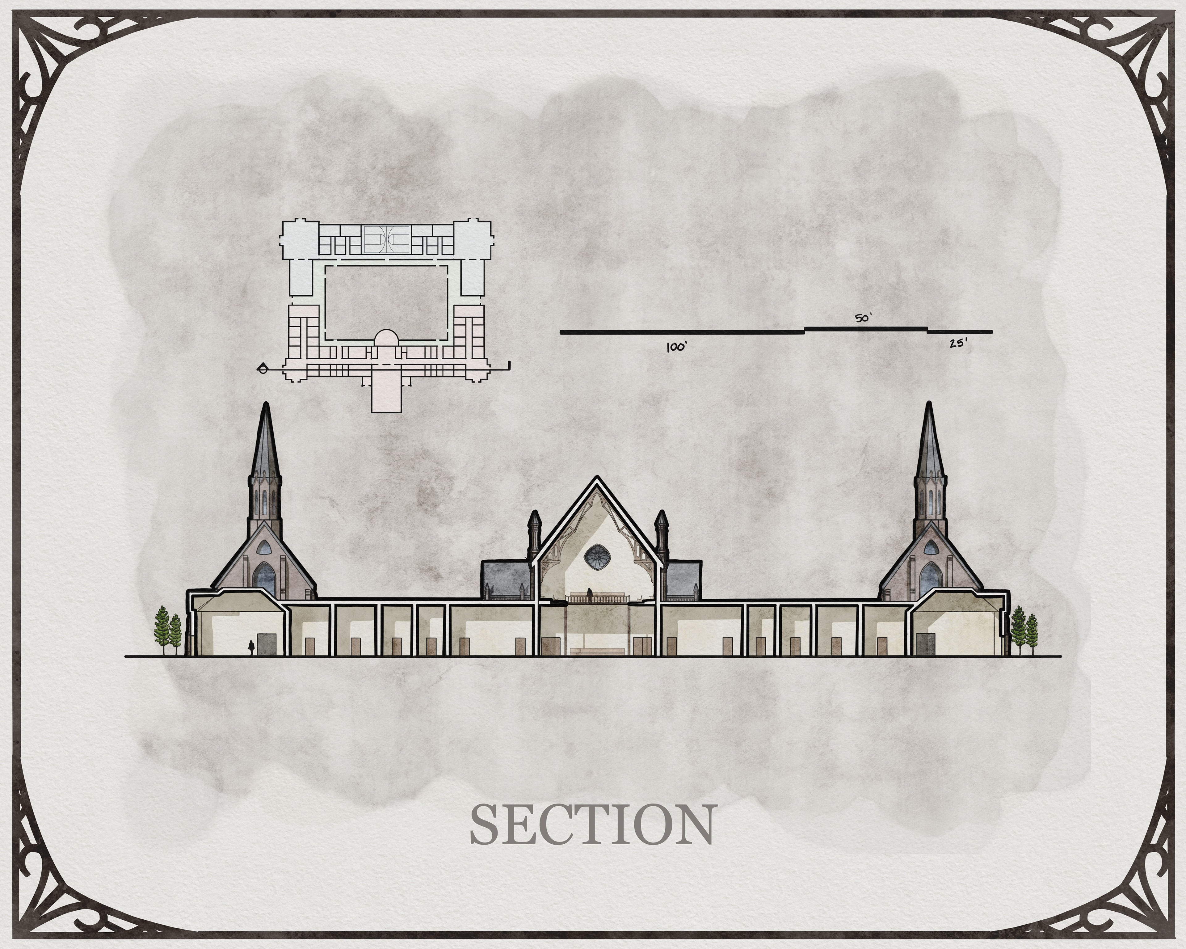 For this project I was challenged with designing a religious building to go on an extension of UVU campus in Vineyard, Utah. I choose to Design a LDS meeting house for Sunday worship and an institute building. This was a solo project. I modeled this project in Revit then finished it in Procreate.